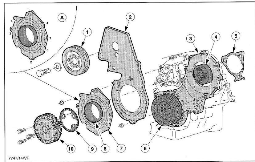 Takže už mám auto doma po opravě. Silikon se dostal do motoru kolem držáku radiálního těsnícího kroužku vstřikovacího čerpadla viz obr. 1 a je to ta část co je označena 7. Protože celá ta věc byla obmazána všemožně silikonem, bez ohledu, zda to zasahuje do motoru nebo ne viz foto č.2. A třetí obrázek je ten vytáhnutý držák s těsněním.