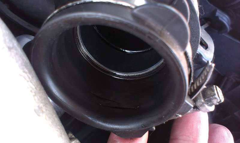 Chalani riešil už niekto prasklinu na prívodnej hadici vzduchu do turba? Mne praskla pod eskapaskou na úchyte hadica - turbo, viď foto. Ako núdzové riešenie som pod eskapasku dal dve otočky izolačky, ale neviem či ju zkrz tepla nezapieklo. Niečo som tam dať musel, bolo vidlo že mi odtial cáka olej.