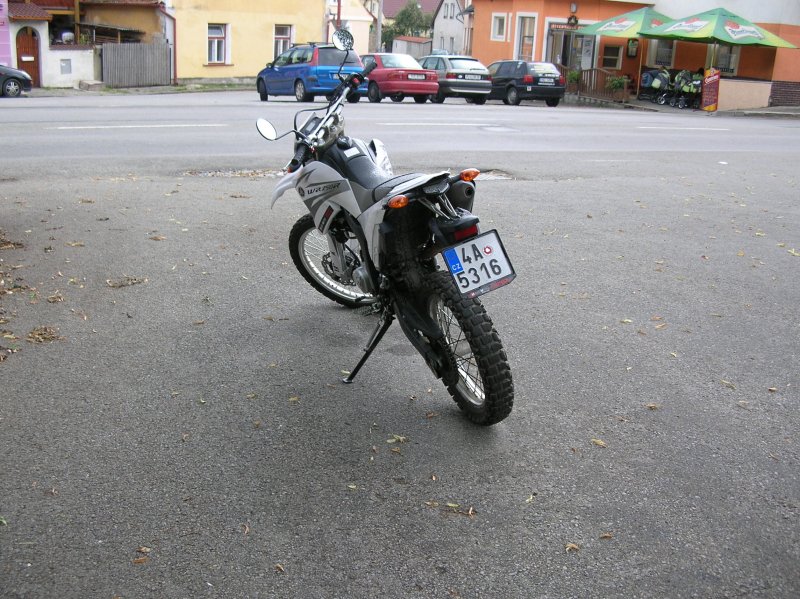 A takhle dopadla¨ Vzhledem k tomu, že nechybělo málo a koukal jsem na kytku zespodu, tak se mi do silniční už jít nechce.. Ale koukám po něčem enduroidním a po něčem, co nesvádí jezdit 180 na okreskách