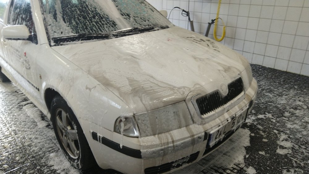 Manželky služební starý auto, nikdo v něm nejel téměř měsíc, nechal jsem ho pod stromama a ten humus co na něm byl, na to už se nedalo koukat - vypadalo jako odloženej vrak, tak jsem to projel umejt...