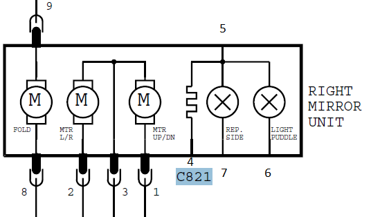 Kurník, ta zrcátka mají sice 9 drátků, ale jen 7 pinů na konektoru je obsazených a podle toho schéma výše jich má být obsazených 9. Copak to má c-max jinak, než focus?