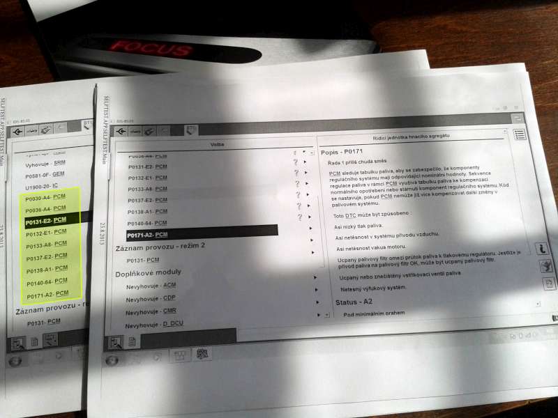 Tak mi to nedalo a zajel jsem do Forda na diagnostiku. Nic proti neorigo diagnostikám tady na fórku, ale po napíchnutí v servisu jim to zjistilo 9 chyb, oproti té jedné co už vím.