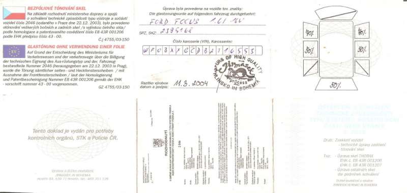 No pokud mas pokoveni s propustnosti 70% tak stopro pres mereni neprojdes... Origo sklo uz zatmavene je a minimalni propustnost ze zakona ma byt 70% takze Ti staci abys mel origo sklo tonovane na cca 5% a uz mas problem...