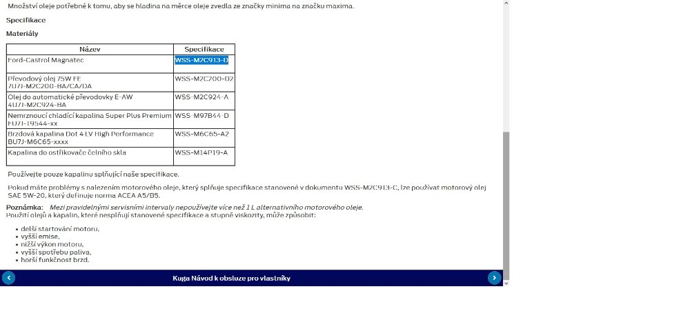 Takže bych se asi měl zeptat takto: Má tu někdo kugu původem z ČR s 1,5 EB, má k tomu příručku a jednoznačně umí říci, co je v ní napsáno ke specifikaci oleje? Já tu totiž vidím (oficiální?) zdroje informací pro kugu a focus a u téhož motoru se specifikace oleje významně liší.