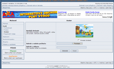 Avatar (maly obrazek pod prezdivkou), to je strasak vsech, co se objevi na foru. Neni to ale nic tezkeho, jak si ukazeme. Jednoduchy nastrel: najdeme vhodny obrazek (jpg, gif), zmensime ho na pozadovanou velikost (150px na 150px, max. 20 kB) a vlozime. Kamenem urazu pravdepodobne nebude samotne vlozeni obrazku, ale jeho zmenseni. Ukazeme si vse krok po kroku.