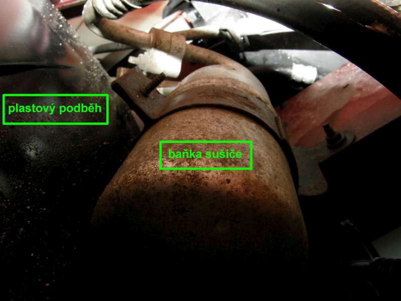 Při návštěvě neznačkového servisu se mi stalo, že mechanici nevěděli, kde jsou plnící ventily klimatizace. Nemačkat ventily, neupouštět médium, při rychlém odpouštění hrozí omrzliny ! První (větev vysokého tlaku) je na pravé straně chladiče (pohled čelem k motoru): Druhý plnící ventil (větev nízkého tlaku) se nachází na baňce sušiče, který je umístěn nad plastovým podběhem pravého předního blatníku (ve směru jízdy). Přístupný je po odmontování podběhu kola. Při doplňování klimatizace doporučuji servis, který má kvalitní plnící zařízení, na displeji se zadá typ a značka vozu, v paměti je uloženo množství chladícího prostředku spolu s olejem, nastaví se program a pak stroj sám provede všechny potřebné operace sám. Tzn. odsátí média z okruhu klimatizace, vakuování (okruh se zbaví vlhkosti a zkouší se na těsnost), poté rafinace použitého média, doplnění média a zpětné napuštění a natlakování klimatizace. Celé to trvalo asi hodinu a stálo obvyklou cenu (800-900 Kč).