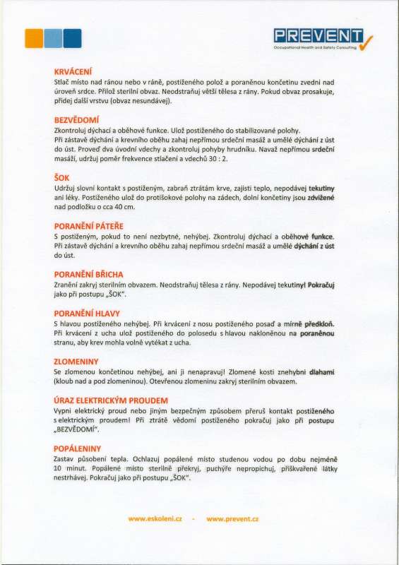 karta první pomoci v České republice + obsah nové lékarničky
