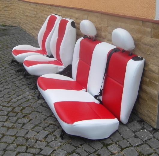 k cenám co chcete vědět ..komplet sedadla předek + zadek v umělé kůži vyjdou na 6000,- v kůži pravé 12000,- tapeci vyjdou na 2200,- v případě předělání látkových částí ..pokud jako jsou u toho bílého komplet tak 6000,- je to pakárna proto takovýá cena ...více fotek mé práce na http://www.woo-doo.eu