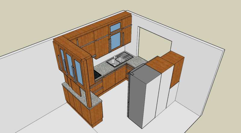 Tvoril jsem sam pomoci programu SketchUp (doporucuju, naprosto skvely, rychly a pochopi i laik ...). Kuchyn vyrabeli truhlari a vysla levneji nez od kuchynskych studii, muzu i poskytnout kontakt. Pokud bude zajem, muzu vyhrabat i nejake fotky, jak to vypada v realu. Za linkou mame sklo.