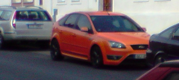 Ford Focus II 2.5T ST, 3 dv.,Electric Orange byl, je Golf GTI VII Performance Pack