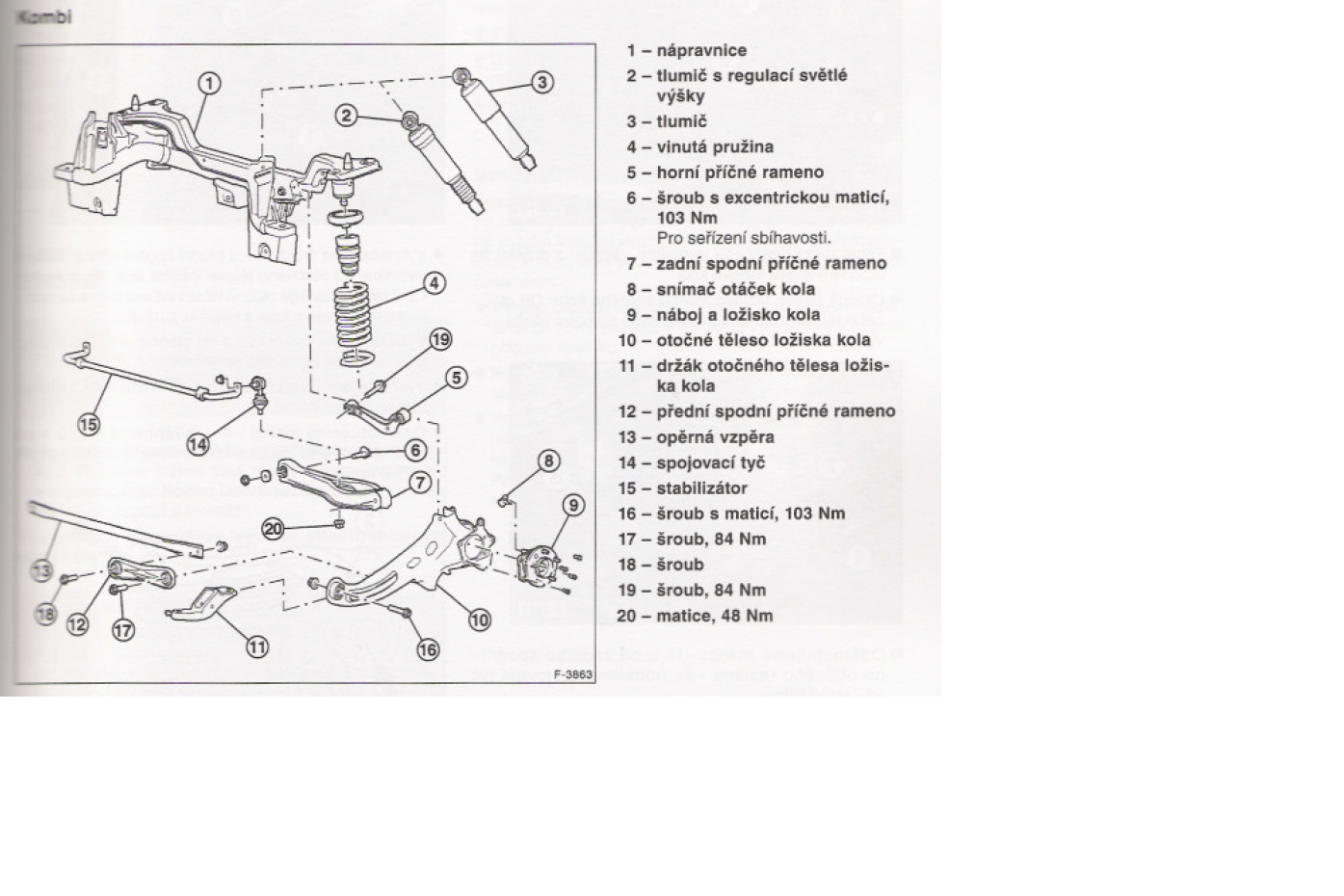 no muze to byt veci, prikladam schema zadni napravy pro kombi, tak se mrkni, ale muze to byt cokoliv -> zvednout auto a pajcrem hledat vule