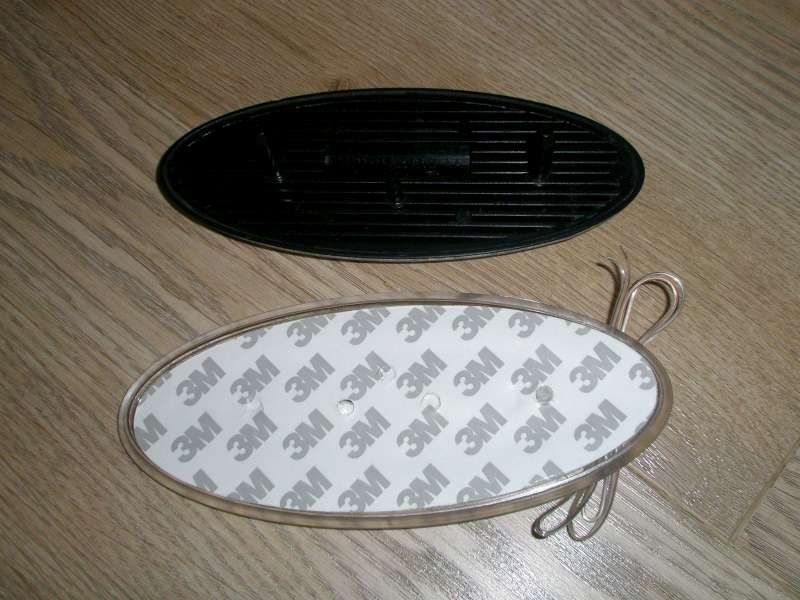 Ahoj, možná by to někoho mohlo zajímat :) Narazil jsem na diodovou podložku sloužící k podvícení zadního znaku na Mondeu a Focusu. Objednal jsem bílou a trochu zakutil. Nejprve je nutné sundat původní znak. Nejlépe je vzít vlasec, navázat ho třeba na dvě tužky kvůli úchopu a zasunout za znak. Znak samotný je stříbrný a drží na takovém černém plastu, který je maličko vidět, nutné je vlasec zasunout až ke kastli za ten černý plast. Pak je nutné celý znak vlascem odříznout - ze stran, zhora a zdola. Pak už by měl jít vytáhnout, v karoserii je alespoň u FF 2009 na třech plastových tyčkách (vidět je to na foto). Jakmile je znak dole je nutné očistit jej od původní lepící folie a odříznout z něj ty tyčky co jdou do kastle, nejlíp plátkem z pilky na železo (podložka v sobě nemá otvory). Pak očistit samotný znak, odmastit a nalepit na podložku ze strany, kde není kabel. Důležité je si dát pozor na vycentrování - při lepení je jen jedna šance, jakmile se znak jednou chytne, těžko se odlepuje. Podložku s nalepeným znakem si pak položte za zadní stěrač, odmontujte jedno ze světel nad SPZ a kabel ze znaku protáhněte jednou z děr po původním znaku a vytáhněte ho dírou pro osvětlení SPZ. Pak už stačí připojit na konektory ke světlu - měděný kablík patří na oranžový kabel vedoucí ke světlu. Při nastartování poznáte jestli jste to zapojili správně, jinak je třeba kabely prohodit. Pak už jen stačí přebytečný kabel zasunout dovnitř dveří, strhnout ochrannou folii a znak opatrně nalepit na předem odmaštěný povrch na původní místo.