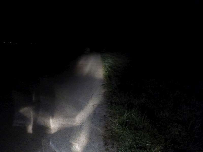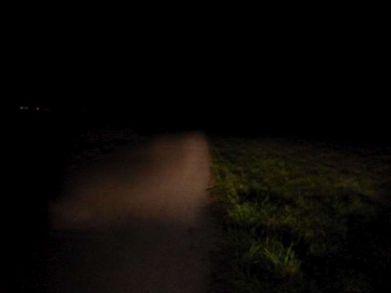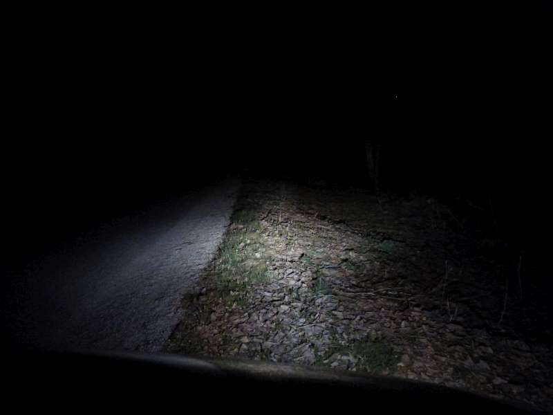 Jasne viditelne, ze svieti len pred autom, kde je prepaleny bod a vo vacsej vzdialenosti tma.
