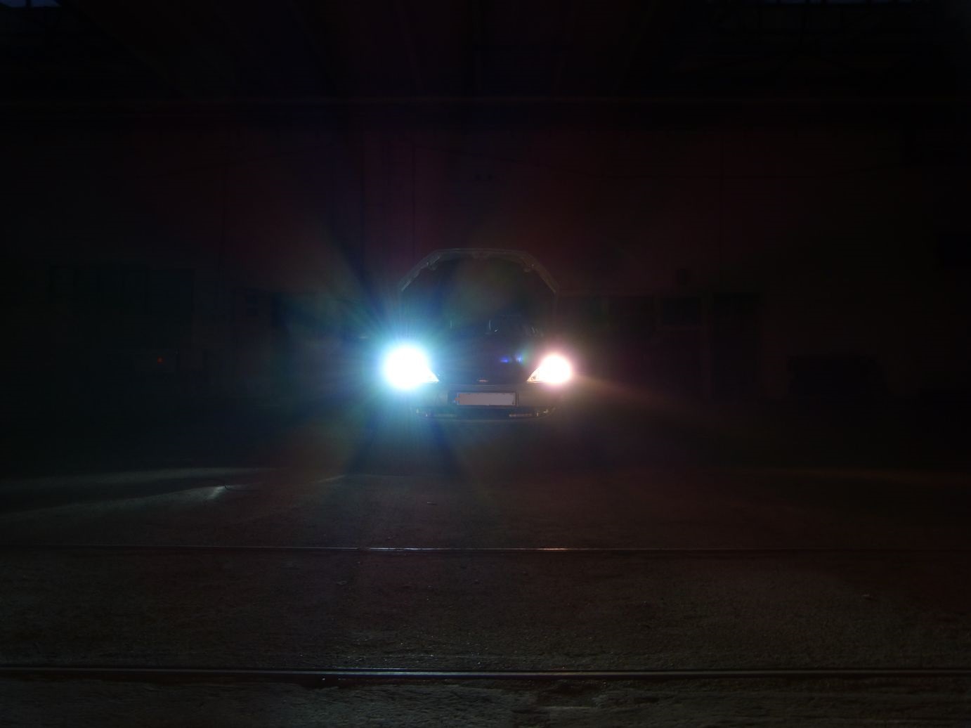 Tu je jasny priklad toho, ako zle svietia modre ziarovky. Aj ked su pouzite kvalitnejsie, znackove. S roznymi lacnymi tuningovymi, a modrejsimi, by bol rozdiel priepastnejsi.