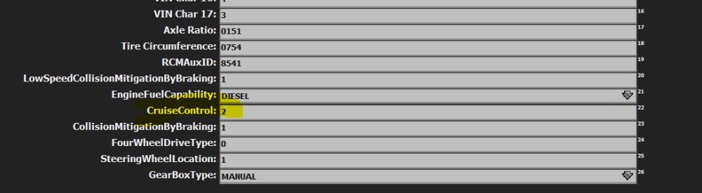 2. PCM blok #DE00, Cruise Control nastavit na hodnotu: Cruise Control