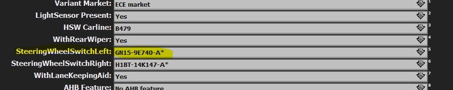 4. SCCM blok #DE01 (Static Data), SteeringWheelSwitchLeft: potrebne zmenit cislo dielu tlacidiel limitera na cislo dielu tlacidla tempomatu
