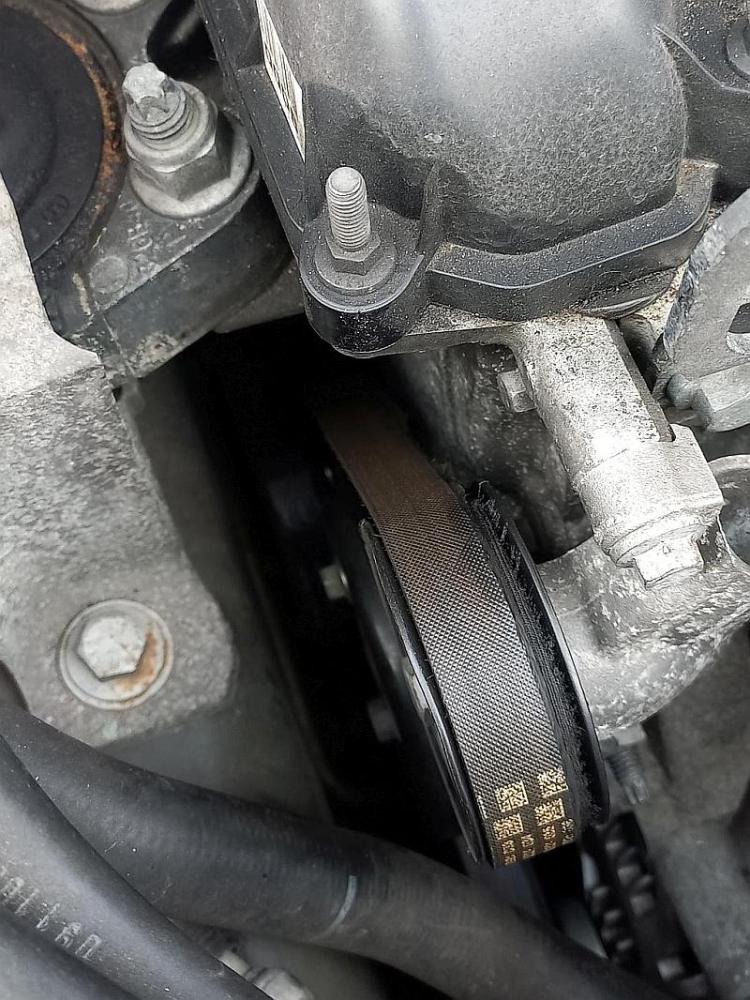 Přišel jsem na to náhodou. Příští týden odjíždím na delší dobu na Balkán a tak si připravuji auto, dělal jsem výměnu filtrů, desinfekci klimatizace apod., ještě mě čeká výměna oleje. No a když jsem oddělal vrchní kryt motoru, náhodou jsem si všimnul právě toho řemenu. Jelikož mě tlačí čas, měl jsem v úmyslu nechat to vyměnit v autorizovaném servisu Ford v Toužimi neboť jsem doufal, že autorizák má takové věci skladem. Omyl, začli mě vysvětlovat cosi o minimálně 4 dnech atd.., prostě skladem to nemají.